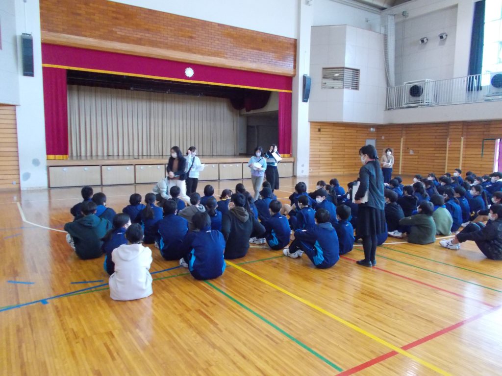 本日、5時間目、6時間目は、1年生は国際交流の時間でした。