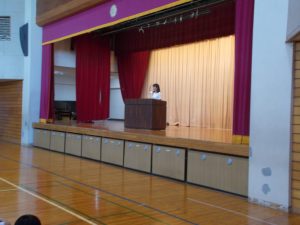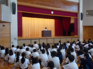 本日、全校朝礼が行われました。校長先生からのお話がありました。