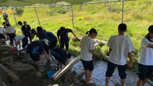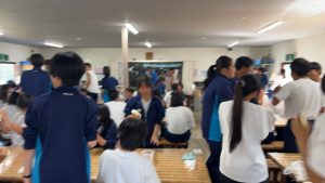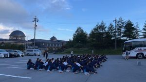 2日目の朝です。朝礼を行います。本日も晴天です。