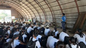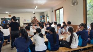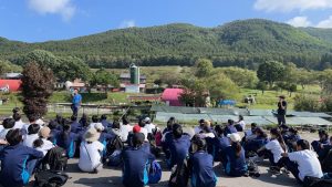 お世話になった牧場の方へお礼のあいさつをします。牧場では様々な体験を通して、命の大切さを学びました。