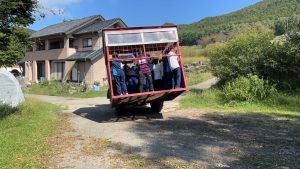 トラクターで長い坂を上ります。爽やかな風を感じられます。