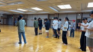 夕食後に、みんなで室内でのレクリエーション、外ではナイトウォークをしています。
