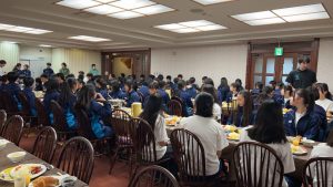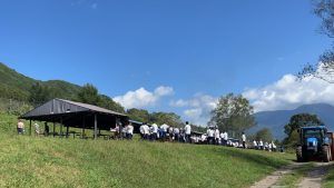 2日目の朝です。朝礼を行います。本日も晴天です。