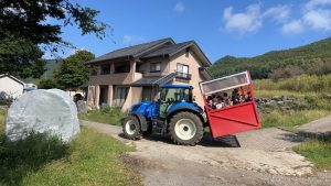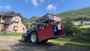トラクターで長い坂を上ります。爽やかな風を感じられます。