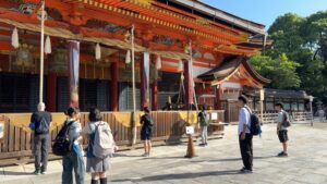 各班で事前に決めたコースで、寺社を巡ります。歴史で学んだことを思い出しましょう。