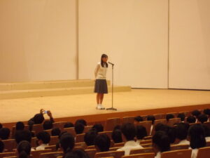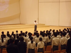 これまでの各学級での練習の成果を発揮し、今年も元気に、清々しく、そして美しい歌声がホールに響き渡りました。