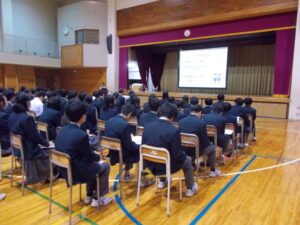 本日4校時に体育館にて、2学年を対象として、職業体験マナー学習を行いました。