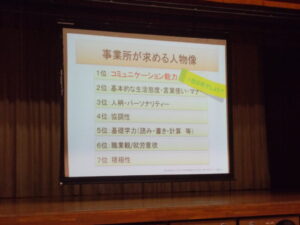 ハローワーク立川の担当者の方より、『 職場体験に向けての心構え』についての講話をいただきました。